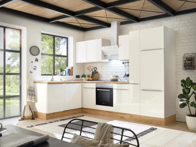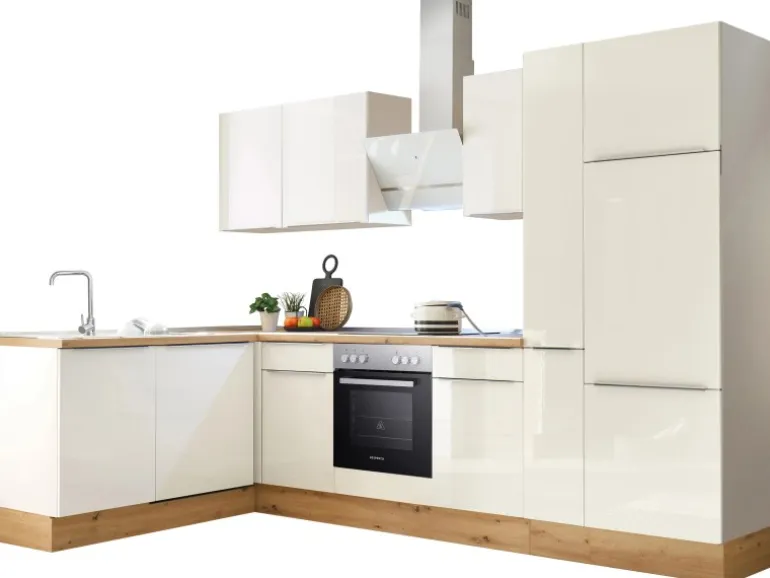 Mit Einbau Herd-Set EEK: A mit rahmenlosem Glaskeramikkochfeld und moderner Schräghaube EEK: A