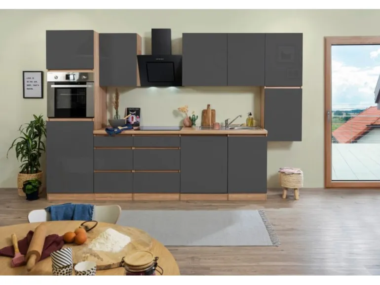 Die Respekta Premium Küchenzeile LBGLRP330HESG besteht aus (H x B x T):