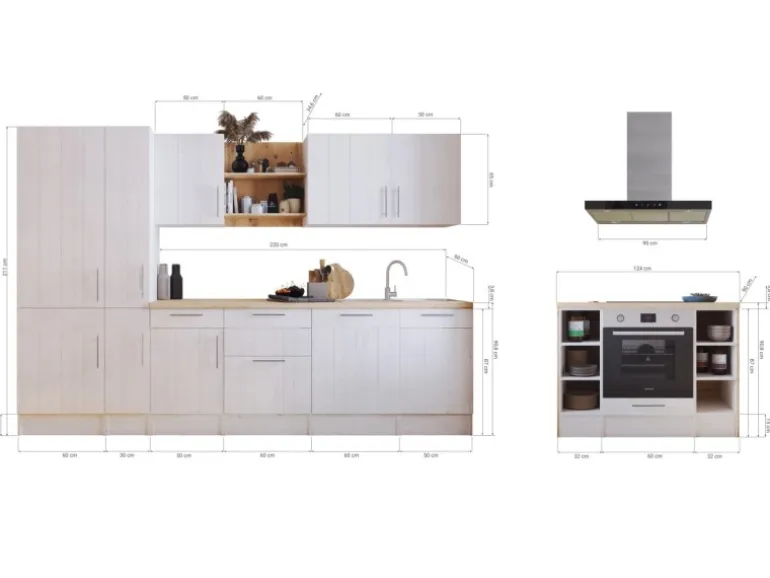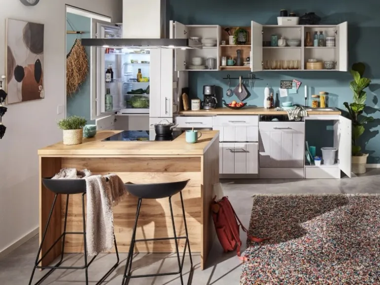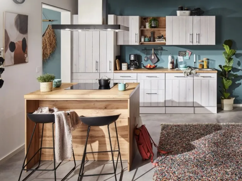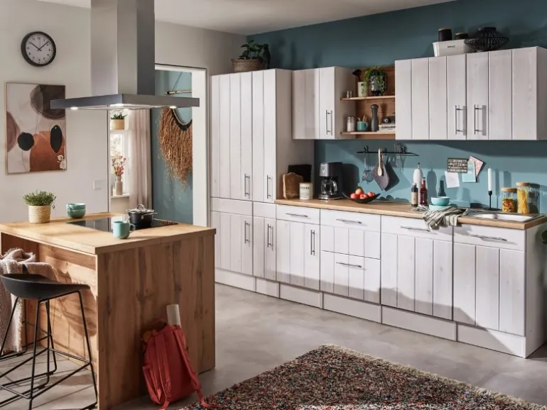 Die Anton Landhaus Küchenfamilie hat eine Erweiterung erhalten: Sowohl Küchenzeilen als auch L-Küchen mit einer Breite von 280 cm oder 310 cm sind jetzt auch mit einer Kücheninsel erhältlich. Es gibt zwei Varianten der Landhaus Inselküchen. Bei der ersten Variante sind alle Elektrogeräte in der Küche eingebaut, während die Insel als zusätzliche Arbeitsfläche dient. Die zweite Variante umfasst eine Insel, die mit einem autarken Backofenset und einer Inselhaube ausgestattet ist. Dieses Set besteht aus einem Backofen und einem Induktionskochfeld mit einer Breite von 59 cm. Unabhängig von der Variante kann die Insel sowohl freistehend als auch wandnah aufgestellt werden, was eine individuelle Anpassung an deinen Küchenraum ermöglicht. Ausgestattet mit einer 38 mm starken Arbeitsplatte, Metallgriffen und Soft-Close Scharnieren sorgt die Anton Küchenfamilie für hohen Bedienkomfort und eine lange Lebensdauer.