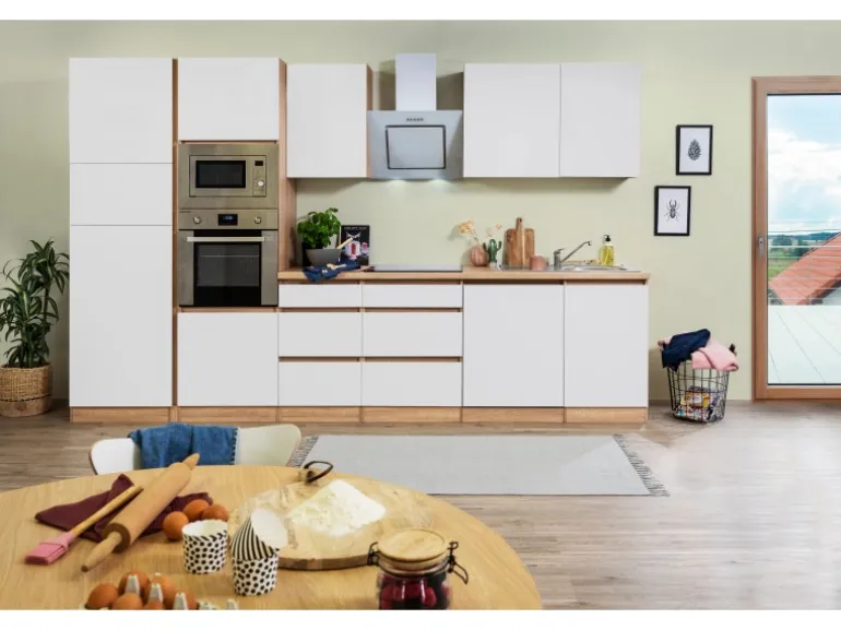 Die Respekta Küchenzeile besteht aus (H x B x T):