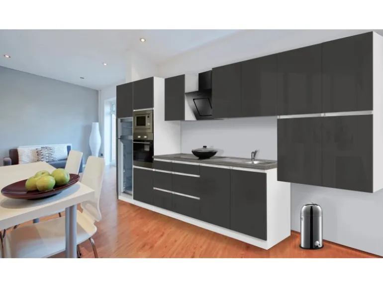 Die Respekta Küchenzeile besteht aus (H x B x T):