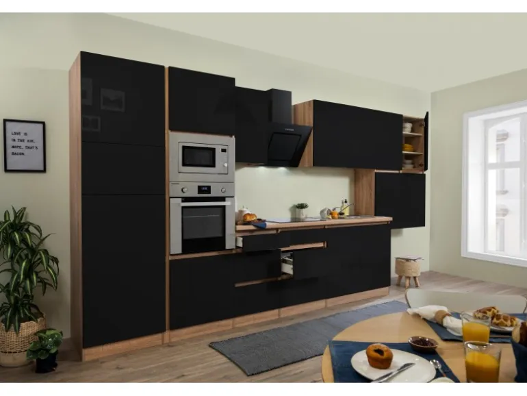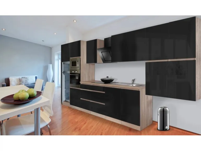 Front Schwarz Hochglanz und Korpus Eiche Sägerau Nachbildung