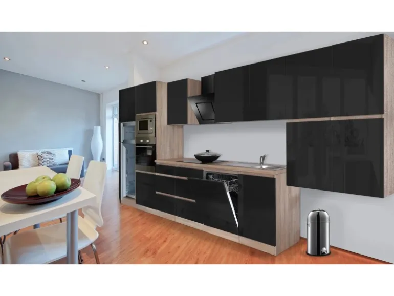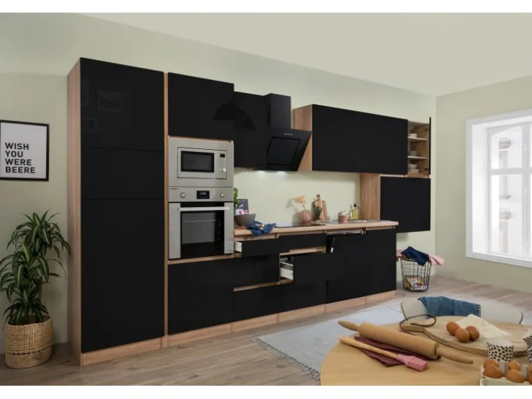 Front Schwarz Hochglanz und Korpus Eiche Sägerau Nachbildung