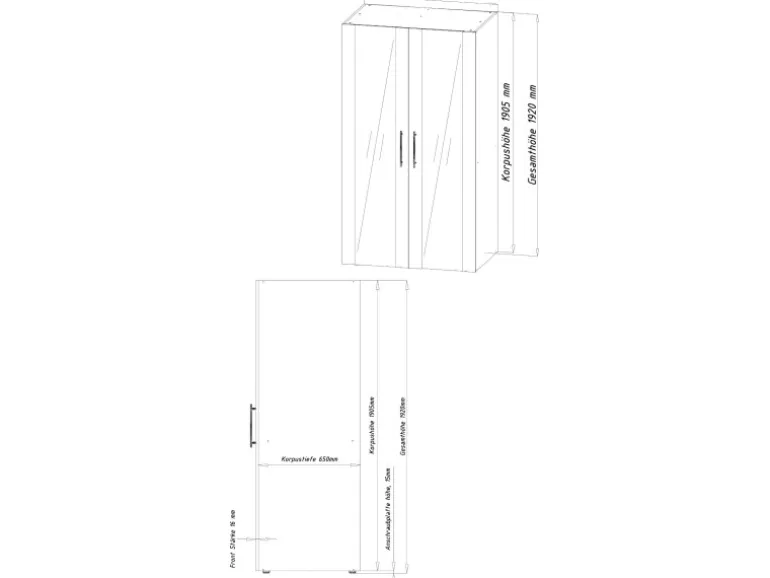 Abmessungen (H x B x T): 193 cm x 104 cm x 67 cm