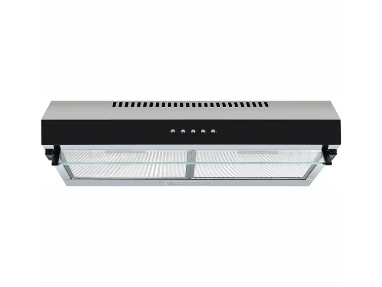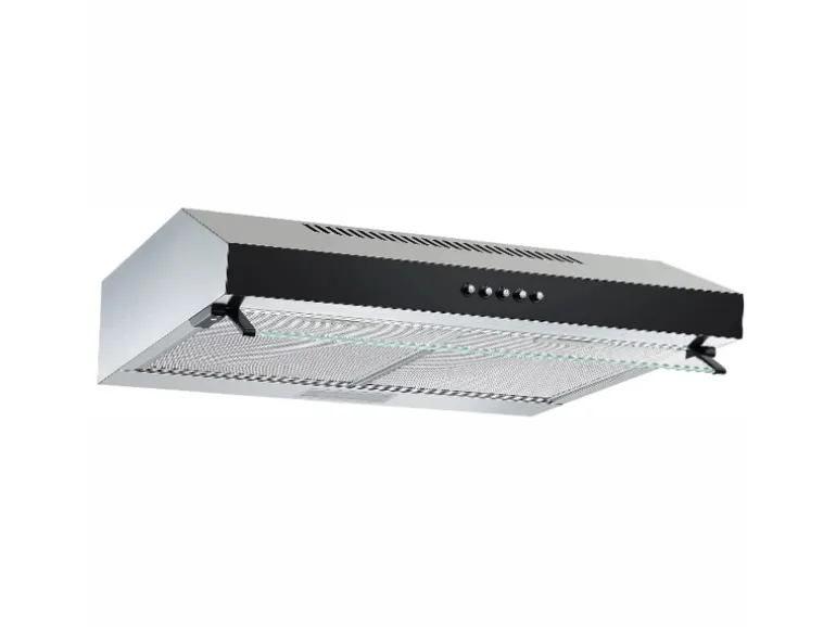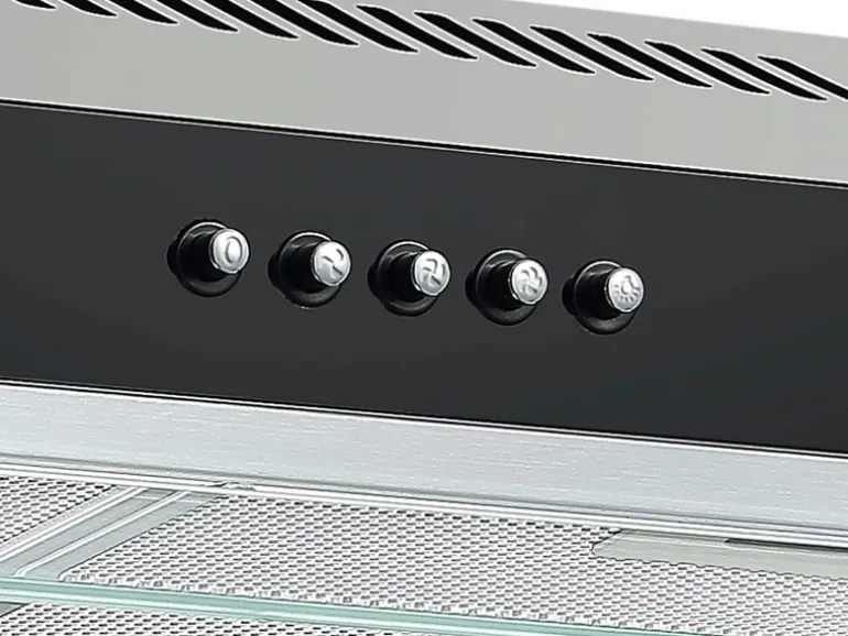 Die Abzugshaube spart Platz in der Küche, da sie unterhalb eines 60 cm breiten Oberschrankes montiert werden kann. Außerdem überzeugt die Abluft durch die robuste Verarbeitung aus Edelstahl. Die zwei Metallfettfilter lassen sich leicht abnehmen und reinigen. Zudem sind sie spülmaschinenfest.