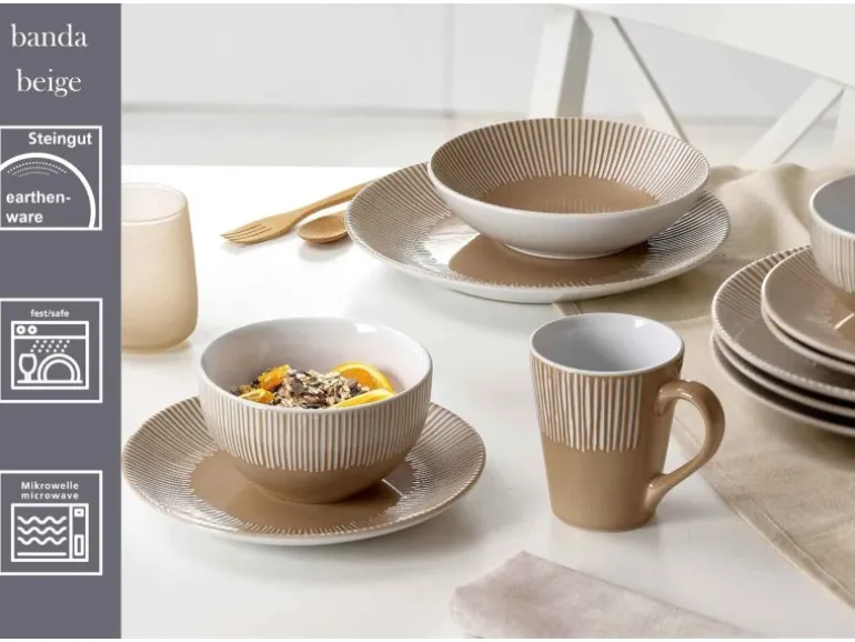 Lässiges Mix & Match-Geschirr: banda begleitet uns ganz entspannt durch die Mahlzeiten des Tages. Dank ihrer schlichten, auf Funktionalität ausgerichteten Coupe-Form sind die wenigen ausgewählten Geschirrteile nicht nur vielseitig, sondern präsentieren sich in ihrer minimalistischen Ästhetik auch ausgesprochen modern. Die randlosen, leicht nach außen gewölbten Coupe-Teller bieten praktischerweise reichlich Platz für Speisen. Ob uni oder im stimmigen Mix aus den zeitgeistigen Farbvarianten, banda garantiert – nicht zuletzt dank seines charmanten Streifen-Reliefs – ein modern-relaxtes Tisch-Ambiente.