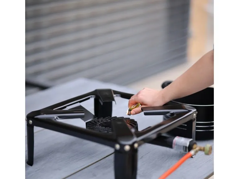 Der Hockerkocher ist der perfekte Begleiter für Outdoor-Aktivitäten für den Anschluss an eine Propangasflasche. Geeignet für Camping, Reisen, Angeln, Picknick, Wohnmobil-Reisen sowie Garten- und Freizeitaktivitäten. Ausgestattet mit einem windstabilen Brenner aus massivem Guss-Eisen und einem stabilen Stahlblech-Gestell, gewährleistet er eine sichere Anwendung im Freien. Mit einem kompakten Packmaß und einem Gewicht, das sich ideal für Camping- oder Wanderausflüge eignet, verfügt der Hockerkocher über einen leistungsstarken 7,5 kW Gusseisenbrenner mit einem maximalen Gasverbrauch von 542 g/h. Die Belastbarkeit beträgt bis zu 50 kg. Der Lieferumfang umfasst einen 1,5 m Propan-Gas-Schlauch und einen Propan-Konstantregler (50 mbar) für den direkten Anschluss an eine Propangasflasche. Technisch überzeugt der Hockerkocher mit einem robusten Aufbau das Gestell ist aus stabilem Stahlblech. Ein vielseitiger Kochpartner, der dank seiner technischen Daten und seiner einfachen Handhabung bei Outdoor-Aktivitäten stets zuverlässig performt. Inkl. 1,5 m Propanschlauch und Propan-Konstantregler 50mbar. Auch geeignet Für Eintöpfe, Suppen, Gulasch und Glühwein etc. und fürs Erhitzen und Anbraten in der Pfanne oder im Wok.