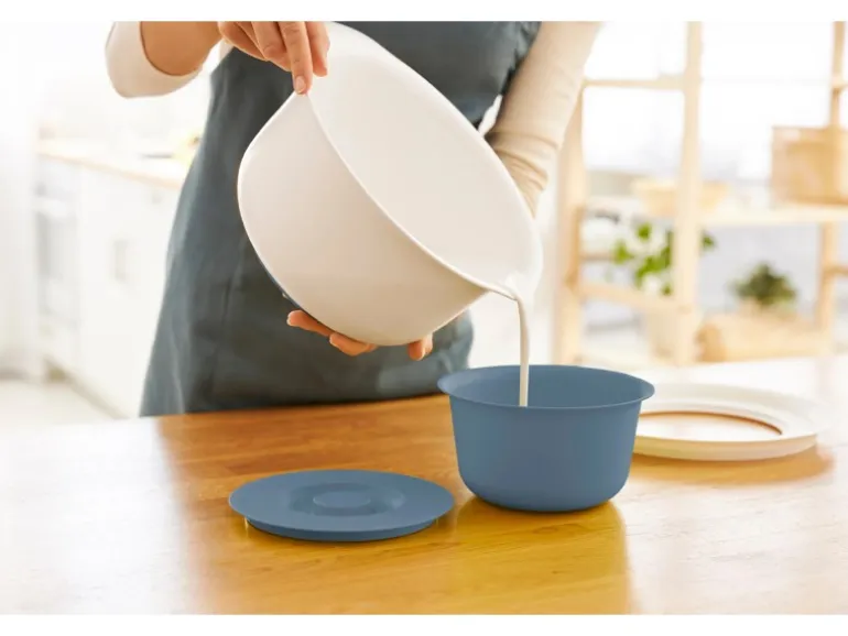 Der Gummiring am Boden bietet sicheren Halt auch auf rutschigen Oberflächen. Der Deckel passt auch ohne kleine Schüssel auf den Spritzschutzring. Das Set ist ganz leicht zu reinigen und kann bei Nichtgebrauch platzsparend ineinander verstaut werden.