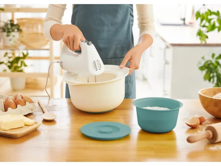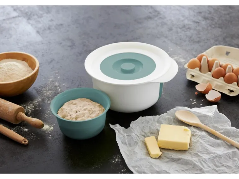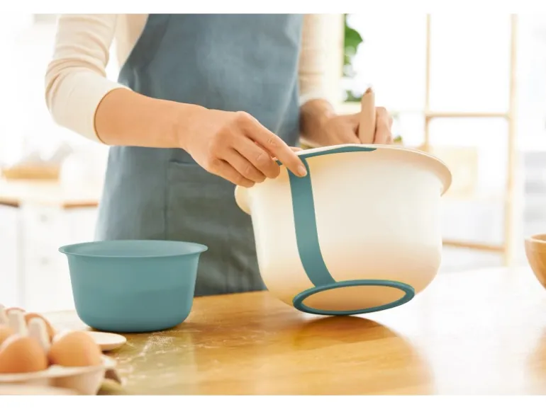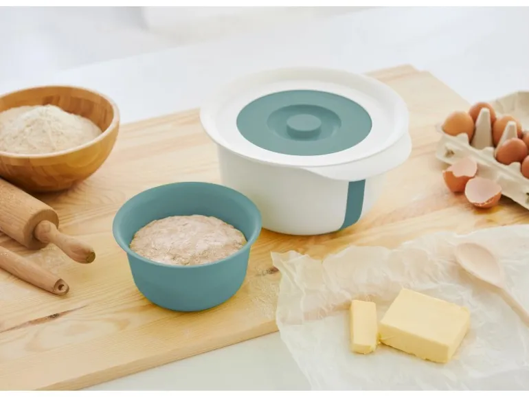 Der Gummiring am Boden bietet sicheren Halt auch auf rutschigen Oberflächen. Der Deckel passt auch ohne kleine Schüssel auf den Spritzschutzring. Das Set ist ganz leicht zu reinigen und kann bei Nichtgebrauch platzsparend ineinander verstaut werden.