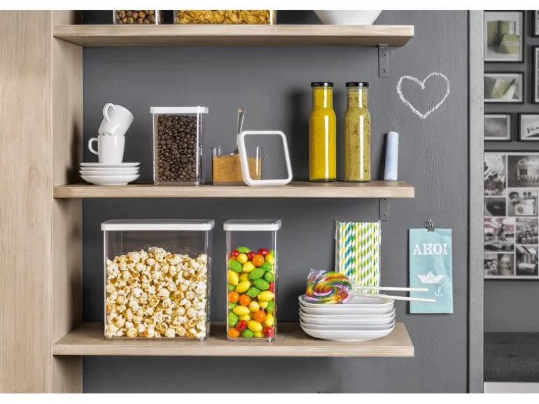 Das ist Loft, die Premium-Küchenlinie von Rotho mit 8 Produkte und unendliche Möglichkeiten. Alle Größen sind untereinander kombinierbar und ergeben zusammen immer wieder gleiche Breiten, Tiefen und Höhen. Die Deckel sind hochtransparent mit edler, weisser Dichtung. Die Behälter sind aromadicht durch die integrierte Zwei-Komponenten-Dichtung. Ob im Schrank, in der Auszugsschublade oder vom Kühlschrank direkt auf den gedeckten Tisch, Loft macht überall eine gute Figur.