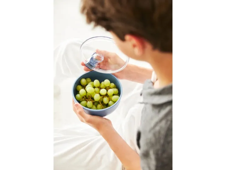 Die Transparenz des Deckels erlaubt es, den Inhalt zu sehen, ohne die Box öffnen zu müssen. Dank des schönen Designs der Box kann sie auch direkt auf dem Tisch als Schale verwendet werden. Zum Aufwärmen der Speisen kann die Box ohne Deckel in die Mikrowelle gestellt werden. Sowohl der Deckel als auch die Box sind für die Spülmaschine geeignet