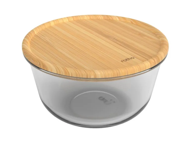 Der Behälter Nala aus Borosilikat-Glas von Rotho verfügt über einen edlem Bambusdeckel. Der Glasbehälter ist backofenbeständig und verfügt über einen Temperaturanwendungsbereich von + 300 °C bis – 20 °C. Zusammen mit dem Bambusdeckel ist die Dose ideal, um übrig gebliebene Speisen im Kühlschrank aufzubewahren. Der Deckel bewahrt das Aroma und den Geschmack der Speisen und ist aus hochwertigem Bambus hergestellt.