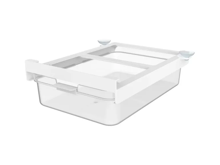 Die Schublade ist ganz einfach zu installieren und mit Saugnäpfen zu befestigen und passt in alle gängigen Kühlschränke. Sie kann auch leicht wieder entfernt und gereinigt werden. Dank des leicht zu ziehenden Griffes kann die Schublade ohne Mühe rausgezogen werden.
