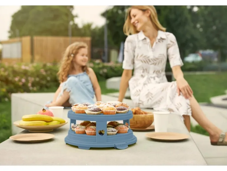 2 Einsätze je 12 Aussparungen für bis zu 24 Cupcakes oder Muffins
