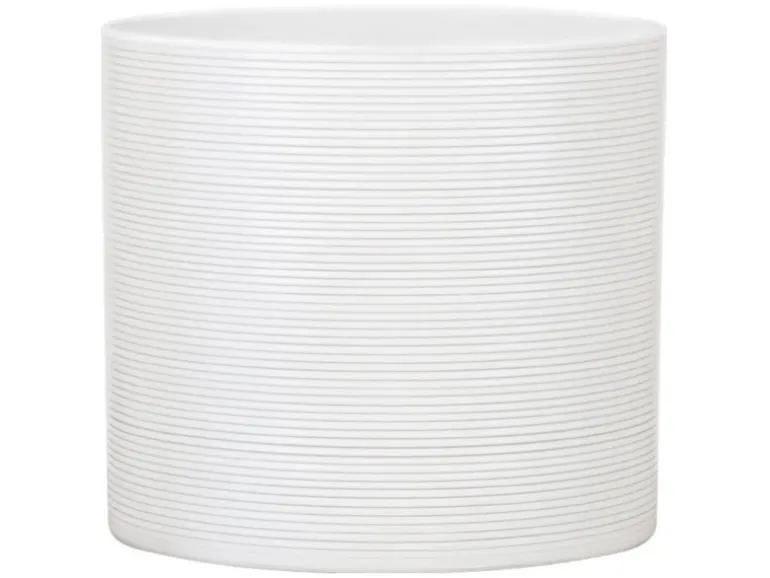 Der Scheurich Übertopf 828 ist aus Keramik gefertigt. Der zylindrische Korpus weist regelmäßige, filigrane Querrillen auf, die dem Gefäß je nach Lichteinfall eine besonders lebendige Optik verleihen.