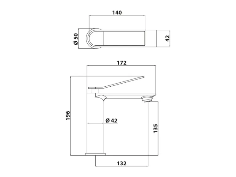 – Gesamttiefe: 17,2 cm, Höhe: 19,6 cm, Auslaufhöhe: 13,5 cm
