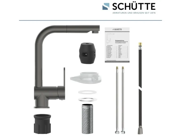 Lieferumfang Ein vollständiges Montageset und eine mehrsprachige, bebilderte Montageanleitung. Die korrosionsbeständigen Anschlussschläuche (400 mm) an das Hauswassersystem sind aus einem flexiblem Metallgewinde und einfach in der Montage.
