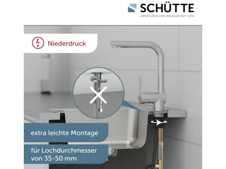In der Mischbatterie Küche ist eine geräuscharme Qualitäts-Kartusche mit langlebigen, keramischen Dichtungen verbaut. Bei Bedarf kann die Kartusche selbständig gewechselt werden.