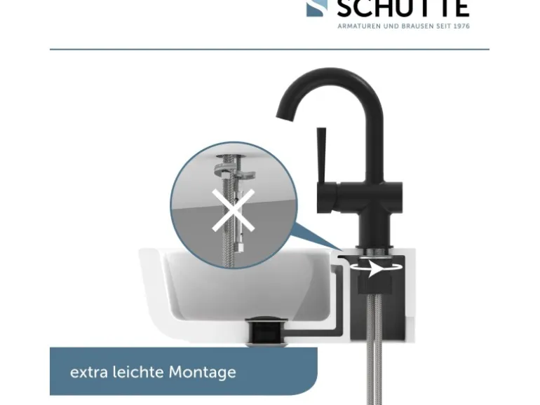 Abgerundet wird die Badarmatur durch ihre einfache Montage. Die mitgelieferte Zentralverschraubung ist praktisch, selbsterklärend und kann ohne Fachkenntnisse schnell umgesetzt werden.