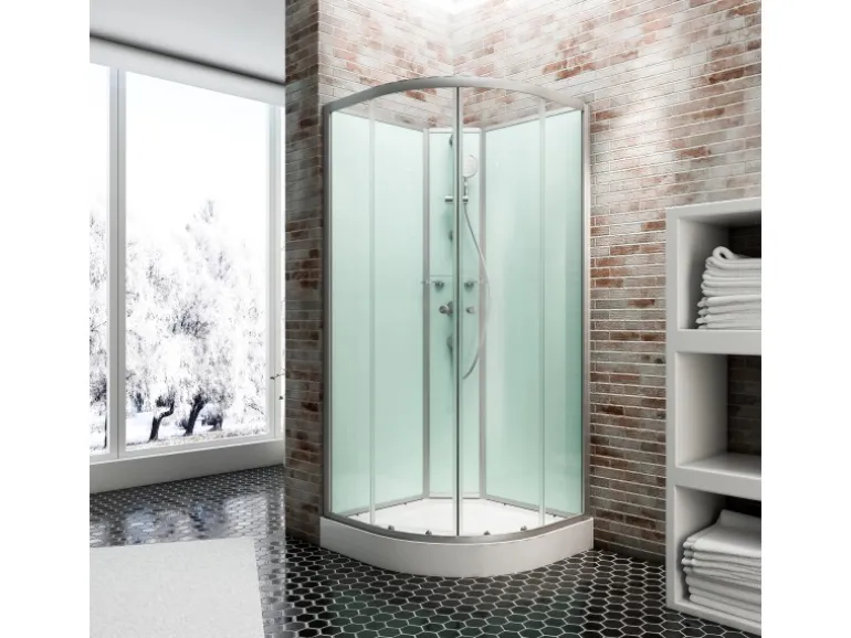 Die Vorderseite der Dusche verfügt über zwei Festelemente und zwei Schiebetüren, die einen großzügigen Einstieg mit einer Einstiegsbreite von 47 cm bieten. Durch die Schiebetüren sparen Sie Platz und daher passt die Dusche auch in kleinere Badezimmer. Das Duschbecken besteht aus stabilem Sanitäracryl. Die Oberfläche ist pflegeleicht und lässt sich unkompliziert mit einem milden Reiniger säubern.