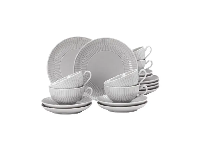 Durch das großflächig, aber dezent eingearbeitete Relief begeistert das 18-teilige kleine Teeservice nicht nur durch seine Funktionalität sondern auch durch die passende Ästhetik und wird so zu einer perfekten Ergänzung auf dem Tisch und in der Küche. Diese Serie setzt mit ihrem geschmackvollen Rillenrelief jeden Moment in Szene. Vom schnellen Frühstück aus der Müslischale, über den entspannten Genuss eines Kaffees am Nachmittag bis hin zum gemeinsamen Abendessen mit den Liebsten, lässt sich diese Geschirrserie wunderbar in jeden Augenblick einbinden. In elegantem Farbton und mit zeitlosem Dekor ist die Serie Amina eine Einladung zum Zusammenkommen und Wohlfühlen.