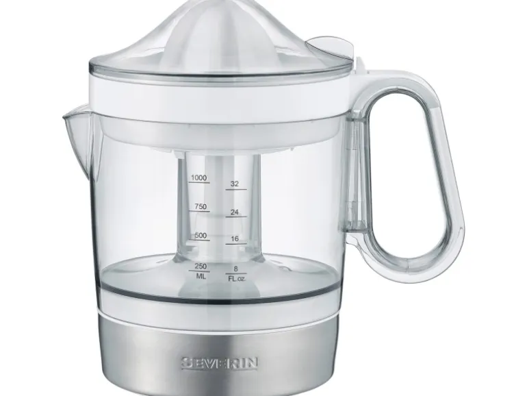 Elektrische Citruspresse für gesunden und erfrischenden Fruchtsaft aus Zitrusfrüchten. Leichte Handhabung: Schnelles Einschalten durch Druck auf den Presskegel