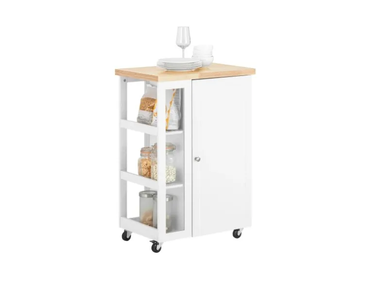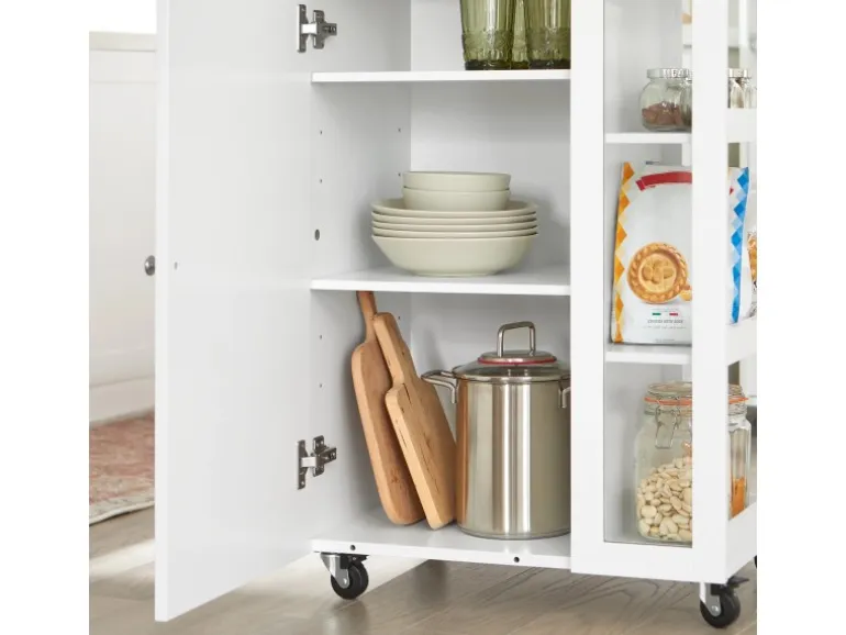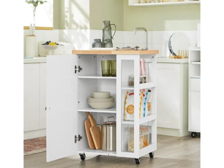Vergrößert die Arbeitsfläche, schafft zusätzlichen Stauraum und eignet sich perfekt als Kücheninsel, Arbeitswagen oder Beistelltisch.