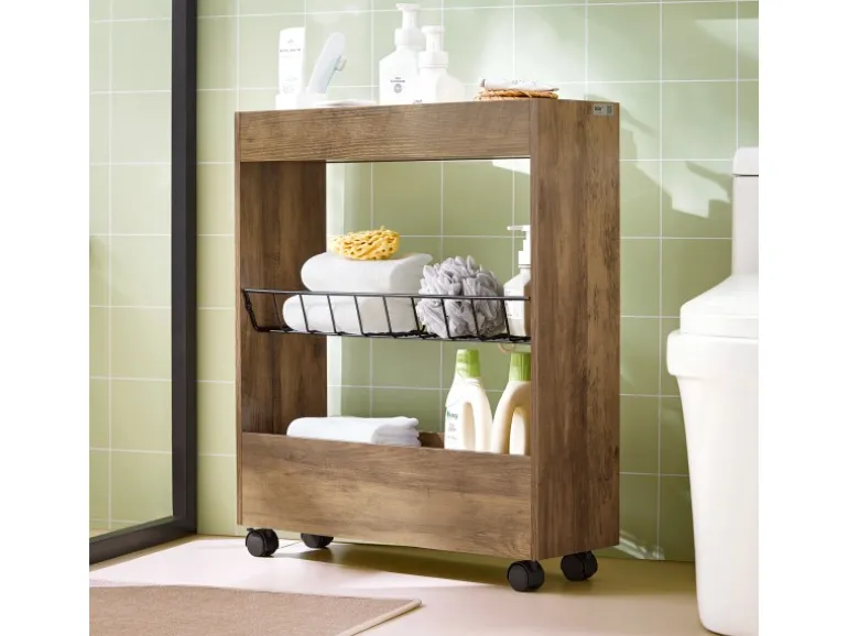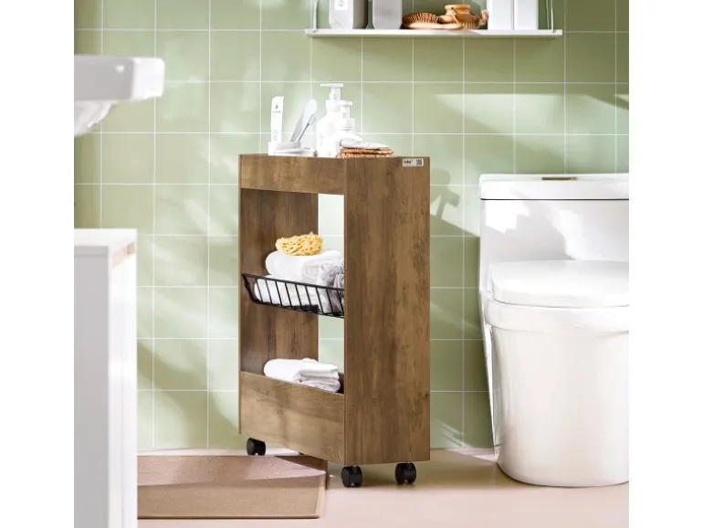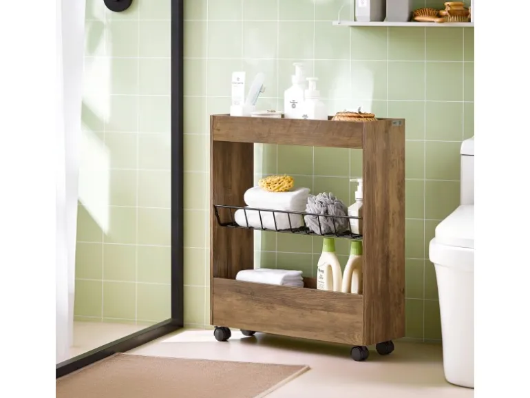 Drei Etagen bieten eine Menge Stauraum für Ihre Gewürze, Badeutensilien, usw.