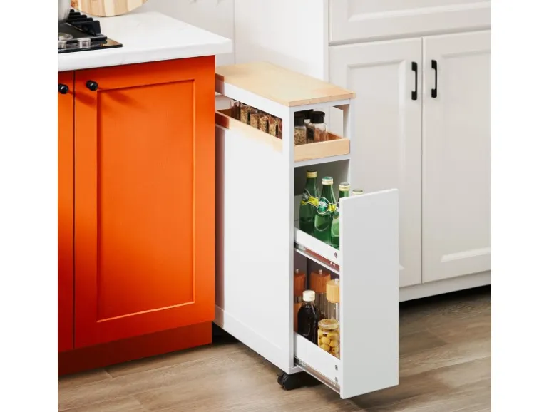 Mit 3 Schubladen bietet das Nischenregal eine Menge Stauraum für verschiedene Dinge, zum Beispiel Ihre Lebensmittel, Gewürze, oder Badeutensilien.