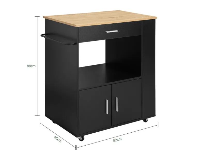 Durch die 3 seitlichen Regalfächern und einen Handtuchhalter können Sie Getränke, Tassen, Handtuch, Küchenrollen und alles, was schnell zur Hand sein soll, abstellen.