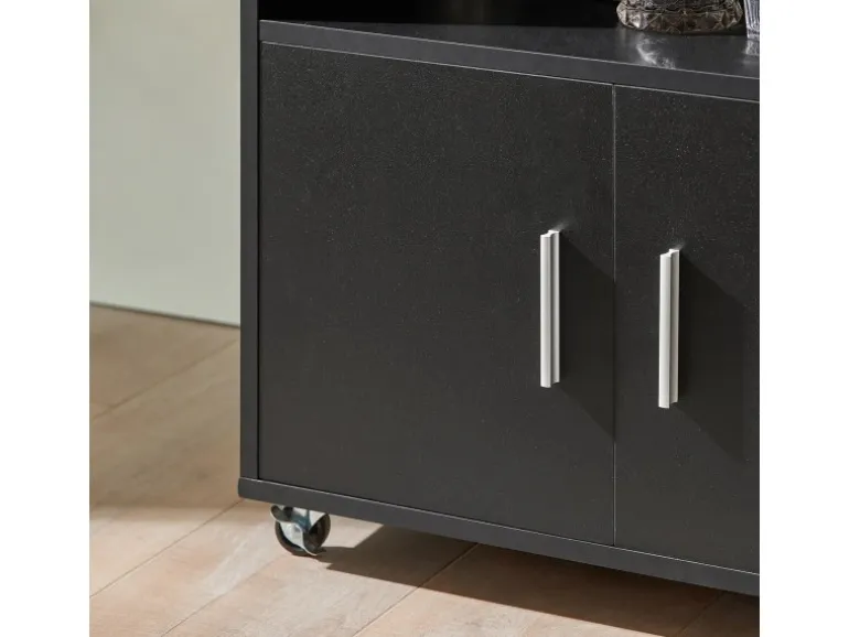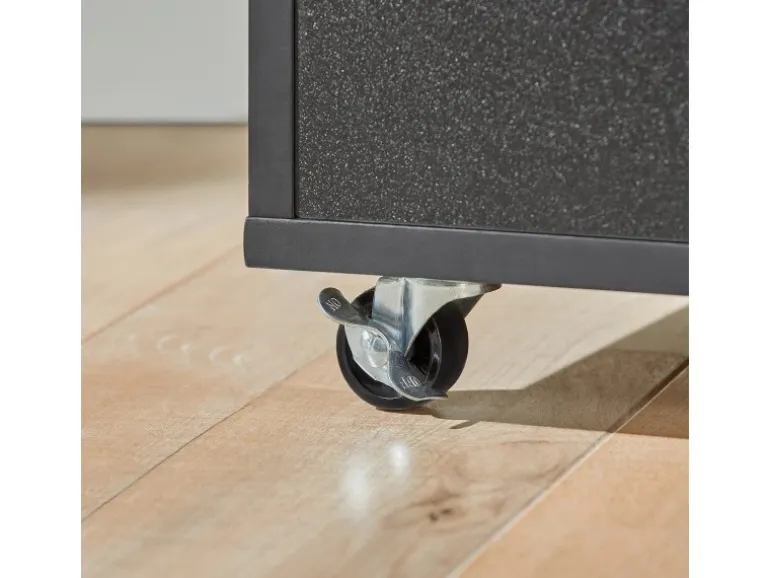 Dank der 4 Rollen (zwei mit Stopper) können Sie den Küchenschrank überall platzieren.