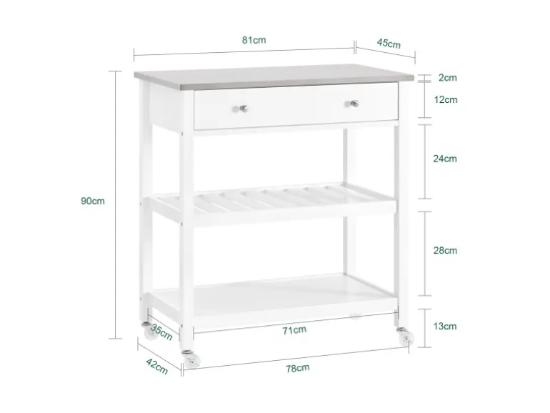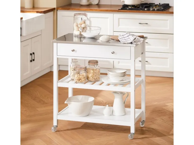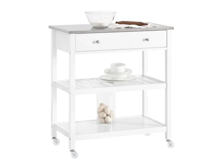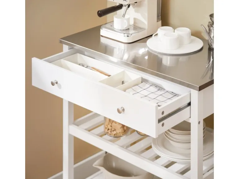 Mit tiefer Schublade (68x28x10cm), zwei offenen Ablagen bietet dieser Servierwagen mit Rollen perfekten Zugriff auf alle Kochutensilien im Küchenwagen.