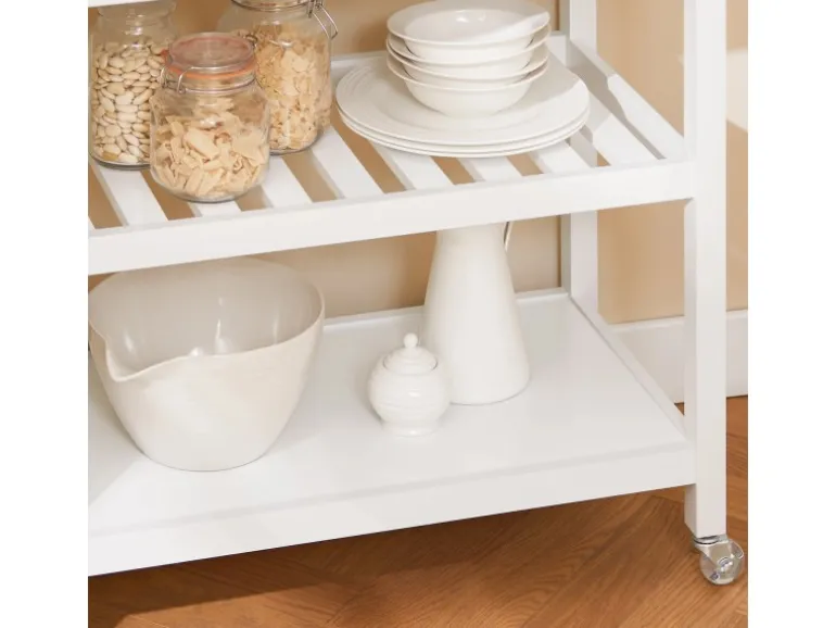 Kompaktes Format, Lattenrost-Ablagen zur besseren Luftzirkulation – ideal für Gemüse, Geschirr oder Küchengeräte in Ihrem mobilen Küchenregal.