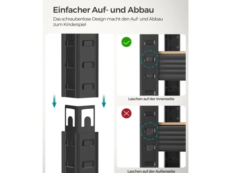 Befestigen Sie das Lagerregal mit dem mitgelieferten Kippschutz an der Wand, um eine stabile und sichere Umgebung zu schaffen.