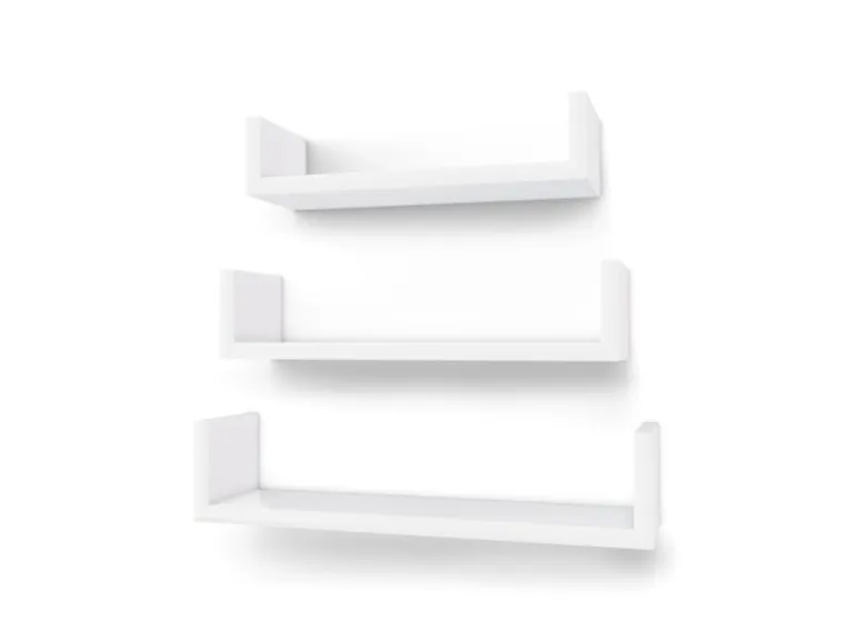 Löcher in die Wand bohren, Schweberegale mit den beiliegenden Schrauben an der Wand befestigen. Zudem liefern wir eine bebilderte Anleitung mit3 Schweberegale in einzigartiger U-Form, die keine Bodenfläche einnehmen und trotzdem zusätzlichen Stauraum im Wohnzimmer, Homeoffice, Badezimmer oder in der Küche schaffen.