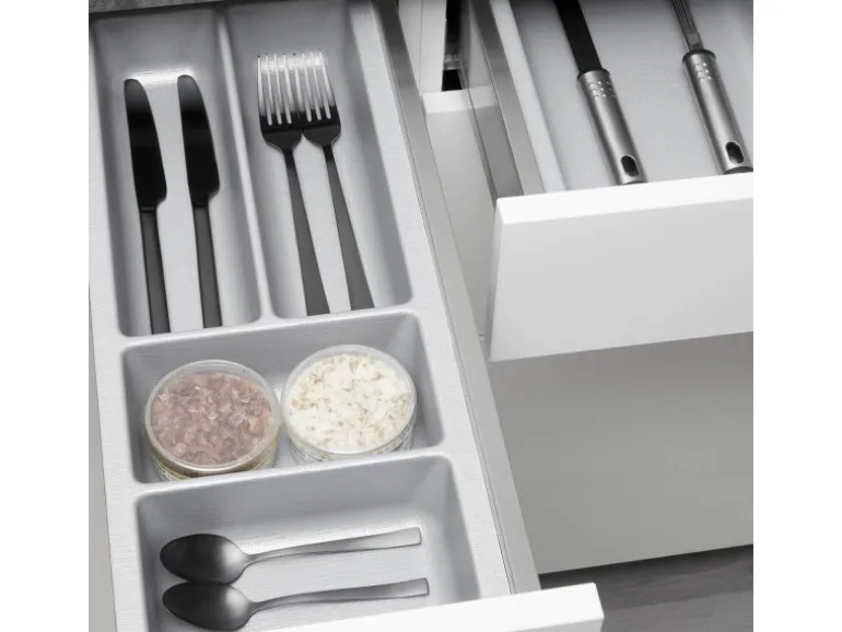 Die Besteckeinsätze zeichnen sich durch ihre ästhetische Form und der Canvas Struktur Silbergrau aus