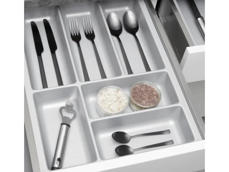 Die Besteckeinsätze zeichnen sich durch ihre ästhetische Form und der Canvas Struktur Silbergrau aus