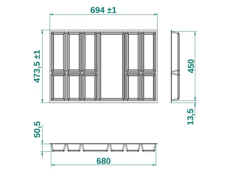 Breite 694 mm – für Korpusbreite 800 mm / Höhe 53 mm / Materialstärke 2,5 mm