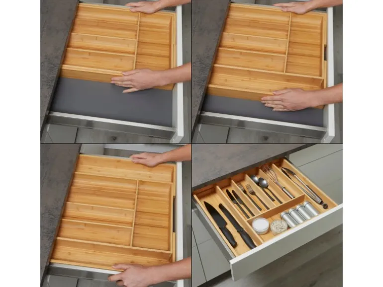 Ein weiteres Highlight der ORGA-BOX ist ihr Material. Sie besteht vollständig aus Bambus, einem langlebigen und stabilen Material, das sich hervorragend für häufig genutzte Küchenschubladen eignet.
