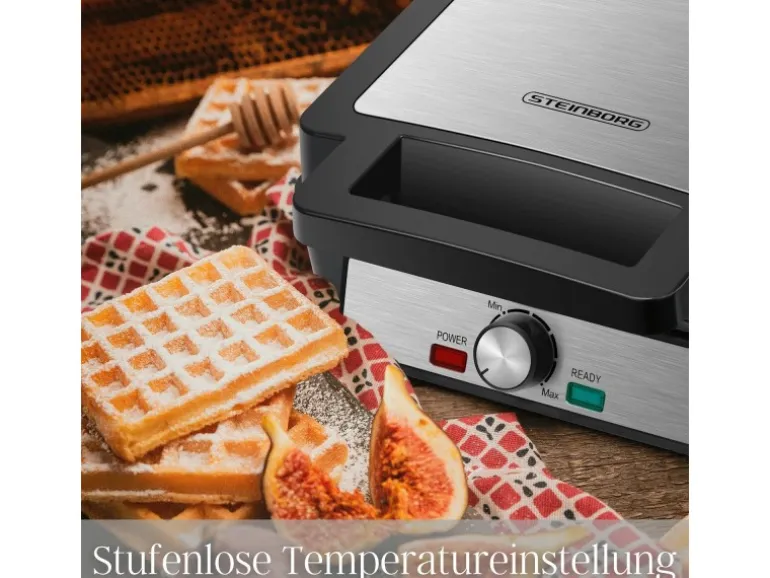 Die Temperatur kann individuell angepasst werden – für goldbraune, knusprige oder weichere Waffeln ganz nach Geschmack.