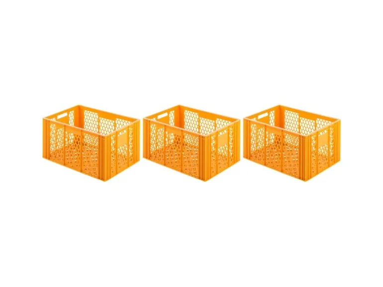 Mit dem stabilen Bäcker- & Konditorenkasten von CHEFGASTRO hast du den perfekten Partner für Sortier- und Lagersysteme an Deiner Seite. Der Bäcker- & Konditorenkasten besticht durch funktionales und praktisches Design. Der Bäcker- & Konditorenkasten aus robustem Kunststoff (Polypropylen) ist temperaturbeständig von -40°C bis +70°C sowie unempfindlich gegenüber Säuren und Laugen. Er kann demnach regelmäßig einer gründlichen Reinigung & Desinfektion unterzogen werden. Ideal ist der Kasten zum Transportieren von Lebensmitteln wie Brötchen oder Brot. Er ist zudem mit weiteren Kästen kombinierbar und hat eine Kapazität von 25kg.