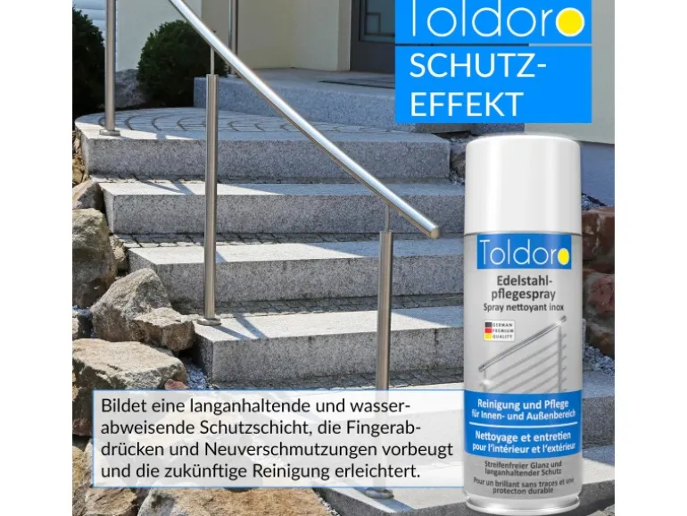 Toldoro Edelstahlpflegespray – der ideale Reiniger für Küche, Grill und alle Edelstahlflächen.