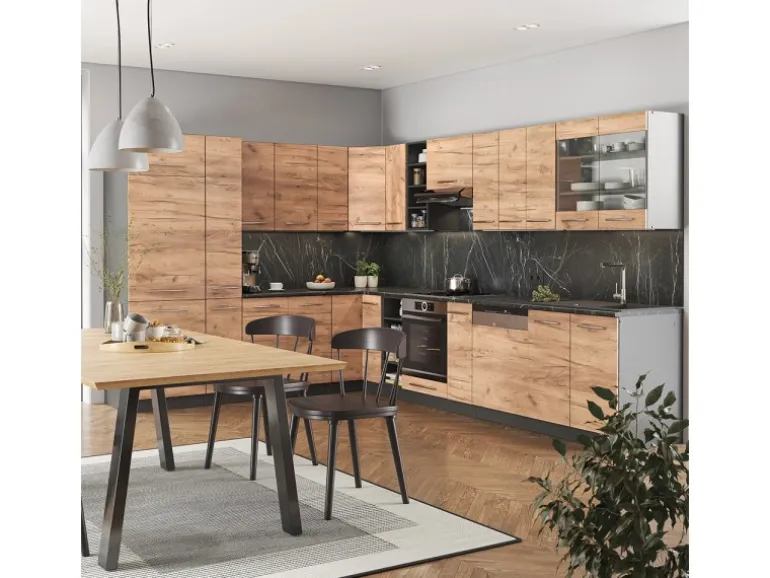 Die Winkelküche ermöglicht zusätzliche Module und eine flexible Umstellung nach Wunsch