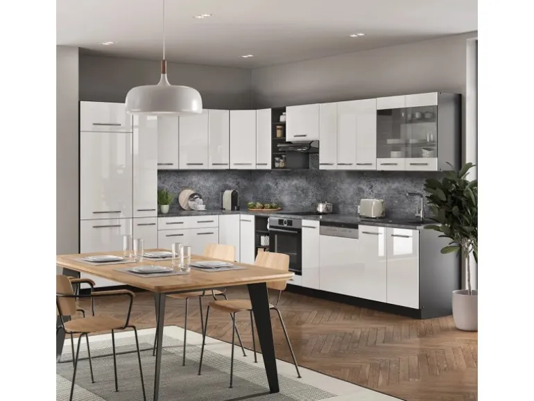 Die Küche in L-Form bietet zusätzliche Module und ein umstellbares Design nach Belieben