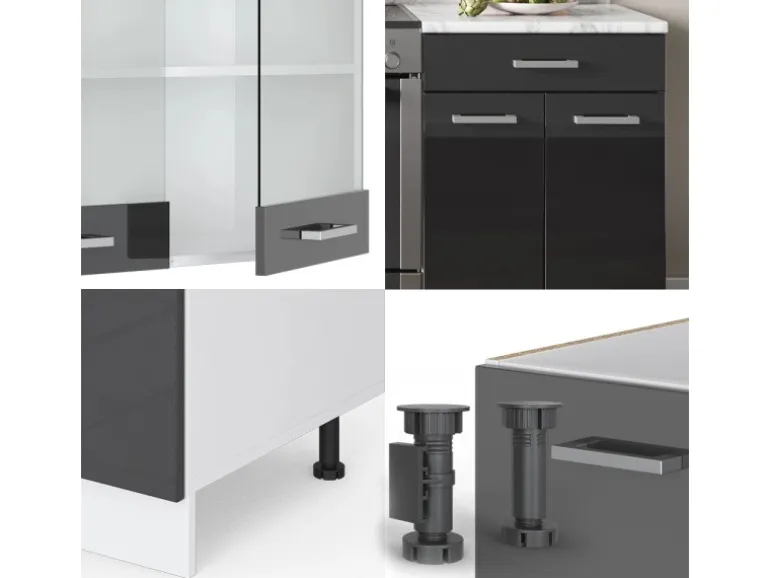 Der Küchenblock besteht aus pflegeleichter Spanplatte 16 mm, mit einer Melaminharzbeschichtung