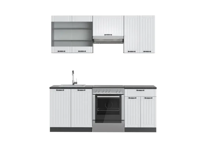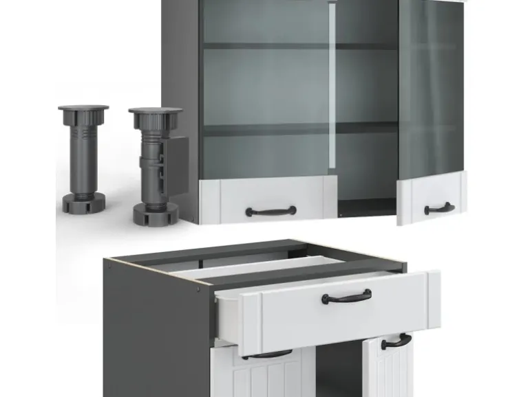 LIEFERUMFANG: Küchenblock mit Arbeitsplatte, Montagematerial, Montageanleitung.