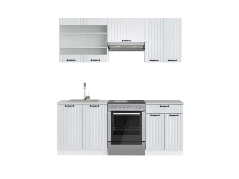 Das Küchenmöbel hat eine Breite von 200 cm, eine Höhe von 82 cm und eine Tiefe von 60 cm