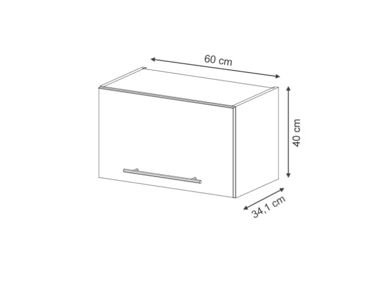 Der Küchenhängeschrank hat Breite 60 cm, Höhe 40 cm und Tiefe 34,1 cm