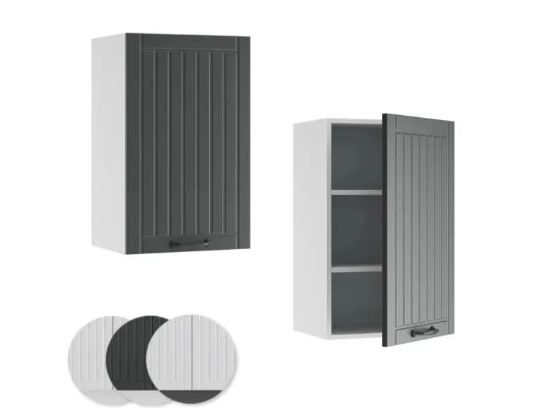 Der Hängeschrank hat Breite 45 cm, Höhe 72 cm und Tiefe 34,1 cm