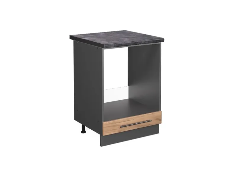 Der Küchenschrank für den Einbauherd hat Breite 60 cm, Höhe 82 cm und Tiefe 60 cm